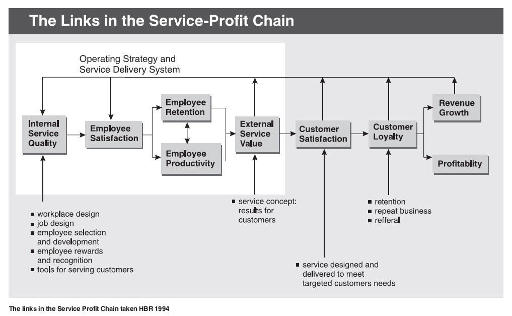 (Comment. Maybe HR needs to think like service product development company? There are a lot of good content out there in the subject of service design to consider for Heskett box 1)
